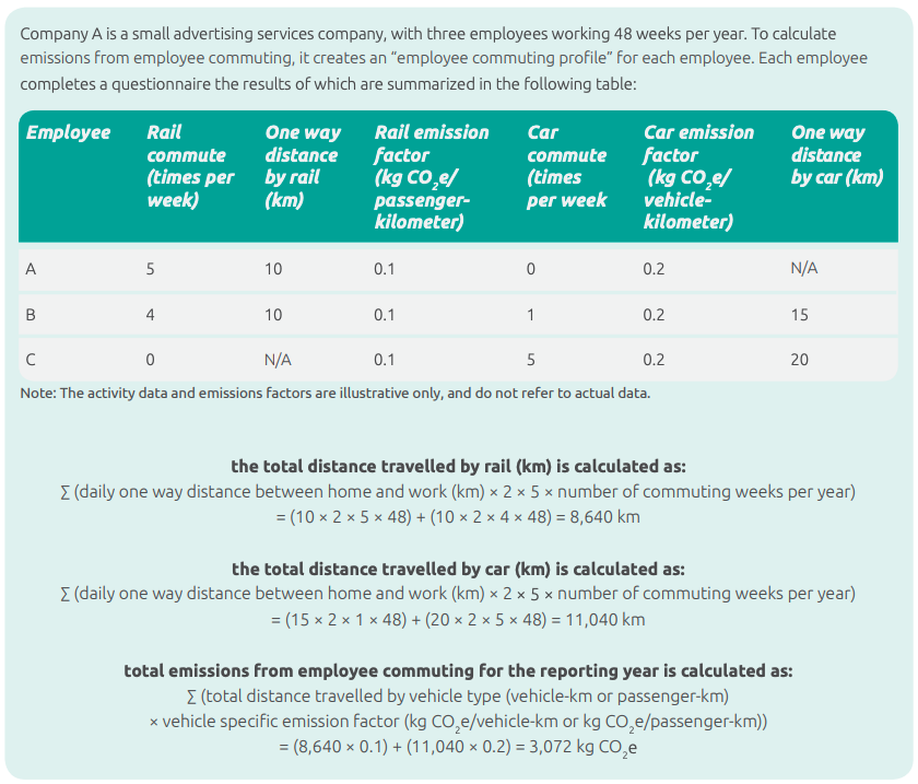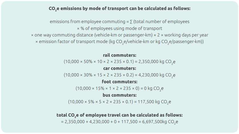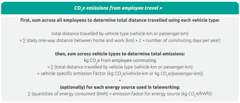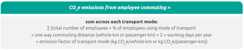 The formula for calculating emissions from employee commuting is shown below.